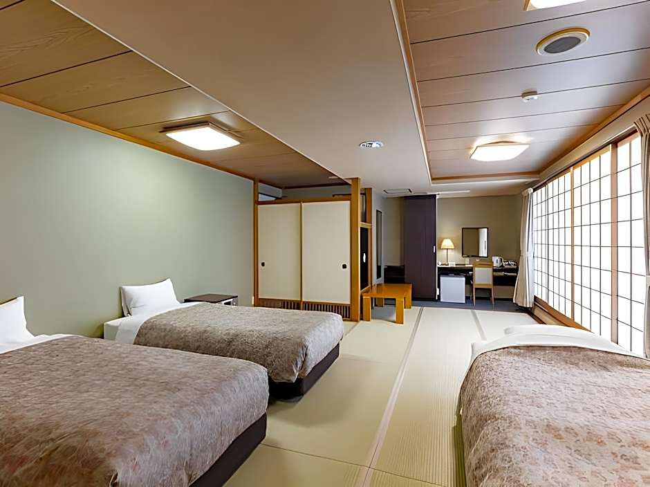 Features a semi-double size bed (47 in wide). Featuring Wi-Fi, this compact rooms are furnished with a TV, a fridge and a desk. They come with air conditioning, an private bathroom and yukata robes.
